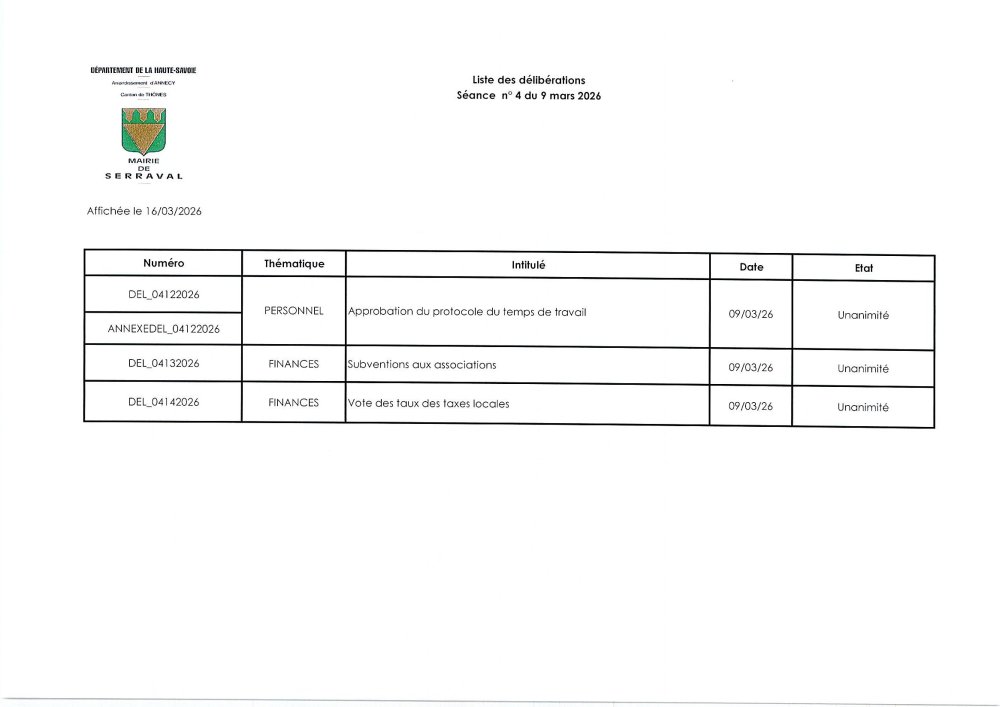 Vous êtes ici : Accueil > Vie municipale > Conseil Municipal > Les séances du conseil municipal depuis le 1er juillet 2022 > 2026 > 9 MARS 2026 > DELIBERATIONS